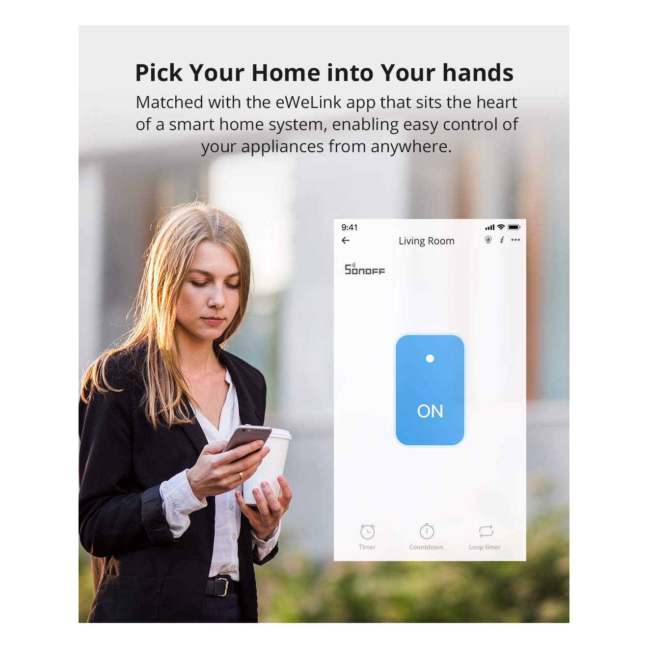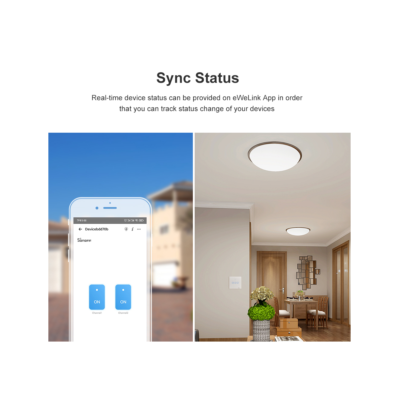 Μέσω της εφαρμογής eWeLink APP, που είναι διαθέσιμοι για κινητές συσκευές Android & iOs, σάς επιτρέπει να ελέγχετε όλες τις συσκευές SONOFF από οπουδήποτε, με ένα κλικ, μέσω τους Smartphone σας. Παράλληλα, μπορείτε να παρακολουθείτε την κατάσταση των συσκευών σε πραγματικό χρόνο, ανά πάσα στιγμή.