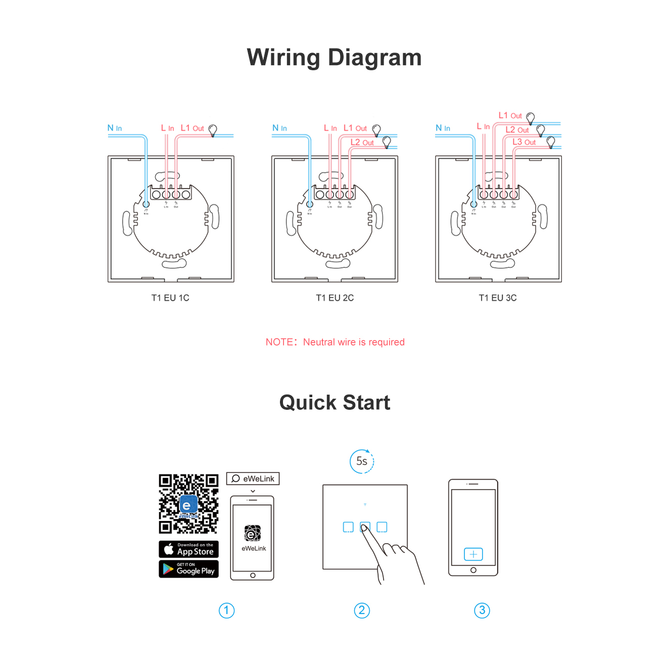⚠️ Σημείωση: Απαιτείται η σύνδεση ουδέτερου για την τροφοδοσία του διακόπτη.