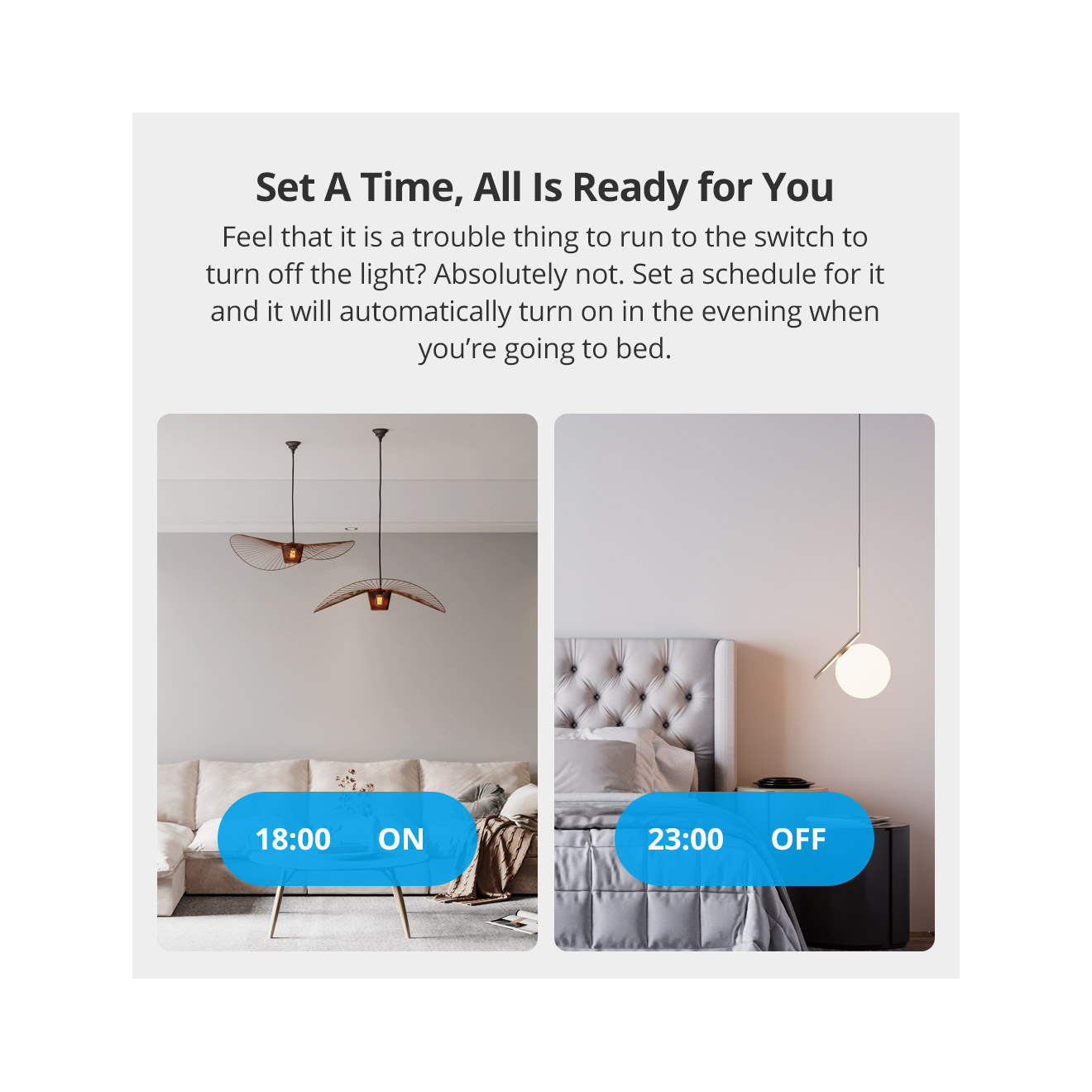 Ενεργοποιώντας τις επιλογές Χρονομέτρων ή Χρονοδιαγραμμάτων στην εφαρμογή eWeLink, η συσκευή σας μπορεί να ενεργοποιηθεί/απενεργοποιηθεί αυτόματα σε μια συγκεκριμένη ώρα. Μπορείτε να αυτοματοποιήσετε τις οικιακές σας συσκευές μέσω 3 τύπων χρονισμού: Προγραμματισμένος χρόνος, Χρονισμός αντίστροφης μέτρησης και loop timing