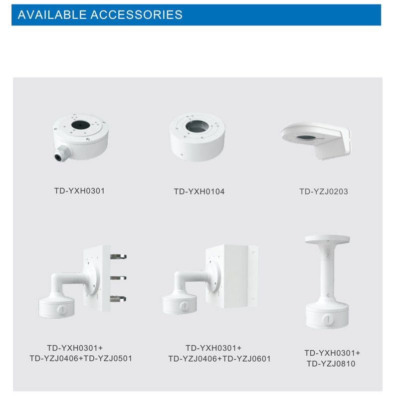 TVT TD-YXH0104 Βάση Στήριξης - Κουτί Διακλάδωσης για κάμερες της TVT. Στερεώνεται σε κάθετο τοίχο ή στην οροφή και πάνω της βιδώνει η κάμερα, ώστε να υπάρχει επαρκής χώρος για την απόκρυψη των καλωδίων και των συνδέσεων της κάμερας της κάμερας εντός της βάσης.