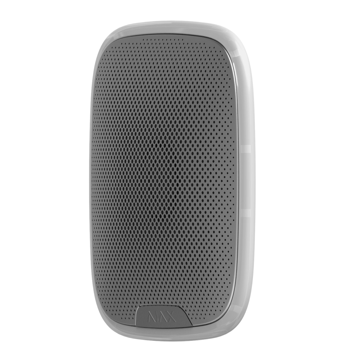 AJAX STREETSIREN WHITE Ασύρματη σειρήνα εξωτερικού χώρου, με φωτιζόμενο πλαίσιο LED και ρυθμιζόμενη ακουστική ισχύ 85-113dB (ρυθμίζεται μέσω εφαρμογής). Διαθέτει κλάση προστασίας IP54, είναι κατάλληλη για λειτουργία σε θερμοκρασίες από -25°C έως +50°C και διαθέτει προεγκατεστημένη μπαταρία, με την οποία μπορεί να λειτουργήσει ως και μέχρι 5 έτη. Επίσης, διαθέτει 2 κλέμες +/- για σύνδεση 12V DC στην πίσω πλευρά της (εντός της βάσης στήριξης) σε περίπτωση που επιθυμείτε να τροφοδοτήσετε την σειρήνα σας με τάση 12V DC από εξωτερικό τροφοδοτικό εφεδρείας.