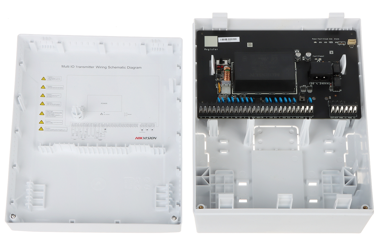 HIKVISION DS-PM1-I16O2-WE - Ασύρματος πομπός έκτης 16 ενσύρματων εισόδων & 2 τηλεχειριζόμενων εξόδων ρελέ (Multi IO Transmitter), κατάλληλος για την ενσύρματη επέκταση των ασύρματων μονάδων AX PRO της Hikvision με ενσύρματα περιφερειακά. Αποτελεί ιδανική λύση για υφιστάμενες ενσύρματες εγκαταστάσεις στις οποίες αναβαθμίζουμε το σύστημα ασφαλείας με ένα ασύρματο σύστημα AX PRO και θέλουμε παράλληλα να χρησιμοποιήσουμε και εμεταλευτούμε και υφιστάμενες ενσύρματες ζώνες της προηγούμενης εγκατάστασης (μαγνητικές επαφές, ραντάρ, κλπ). Παρέχεται σε μεγάλο κουτί με τροφοδοτικό 230VAC και δέχεται επαναφορτιζόμενη μπαταρία εφεδρείας 12VDC 7Ah (δεν περιλαμβάνεται).