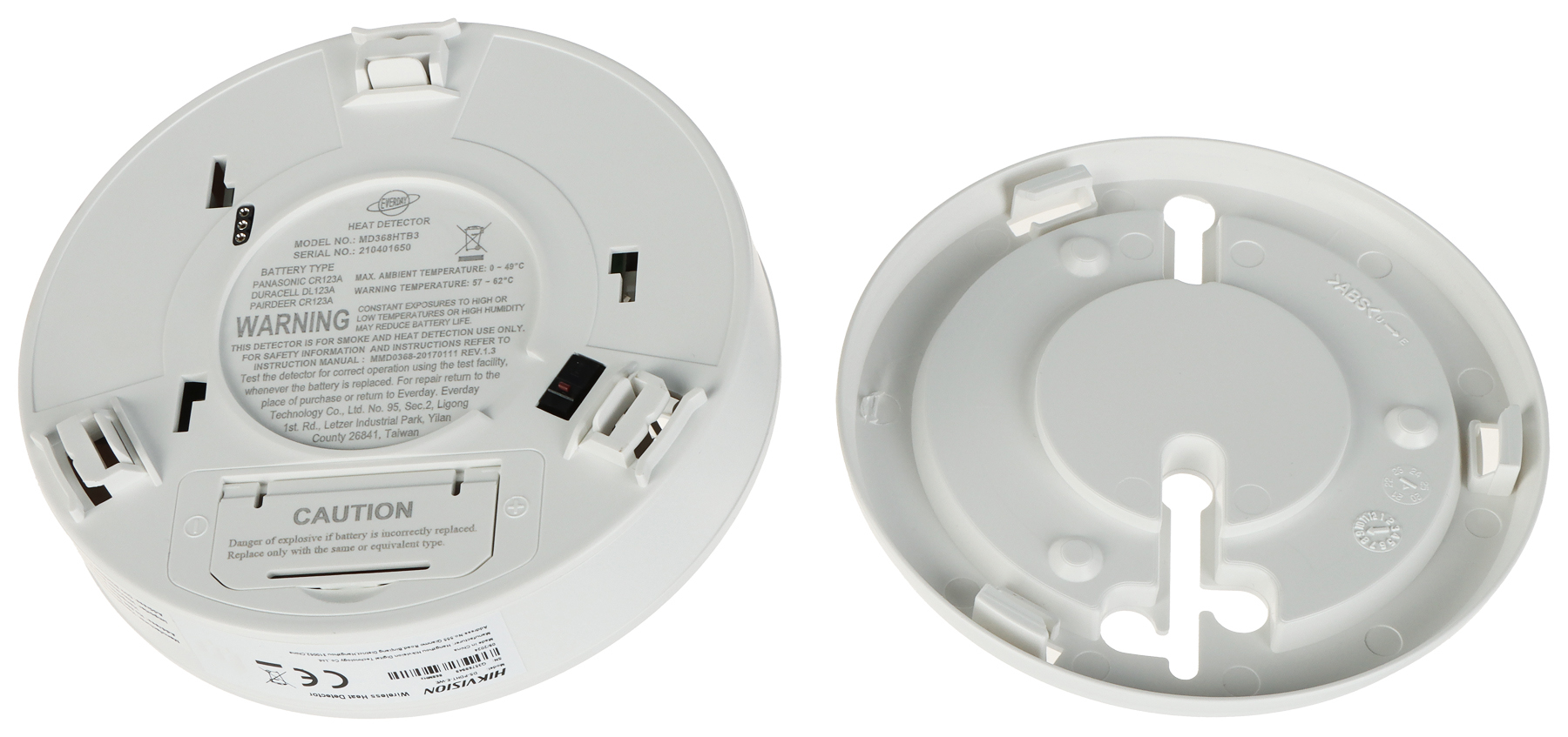 HIKVISION DS-PDHT-E-WE - Αμφίδρομος ασύρματος ανιχνευτής θερμότητας, για πίνακες Hikvision AX PRO. Ενεργοποιείται όταν η θερμοκρασία περιβάλλοντος ξεπεράσει τους 57⁰. Διαθέτει ενσωματωμένο βομβητή >= 85 dB @ 3m, μπουτόν test και σίγασης συναγερμού, πολύχρωμη φωτεινή ένδειξη στάθμης σήματος / ενεργοποίησης, μέτρηση θερμοκρασίας περιβάλλοντος που φαίνεται και στην εφαρμογή (app).