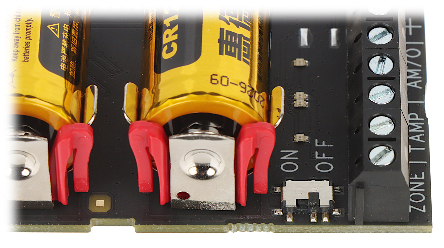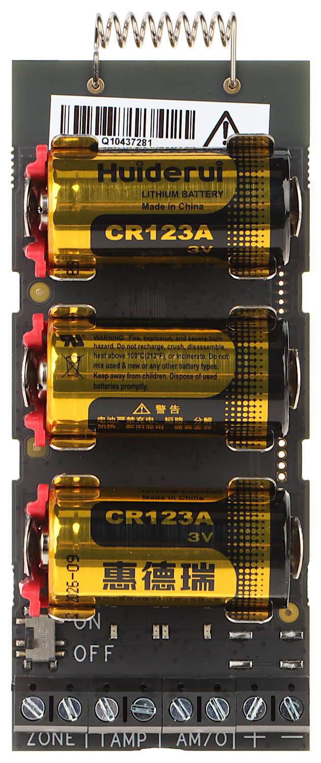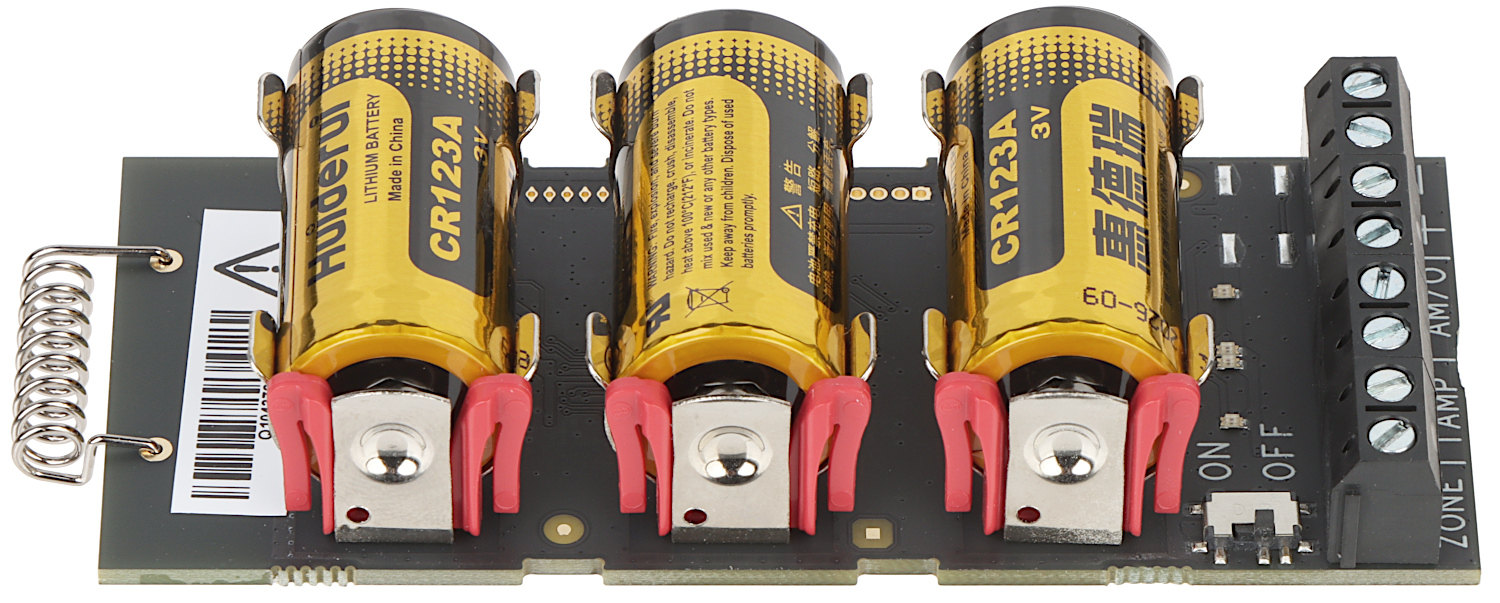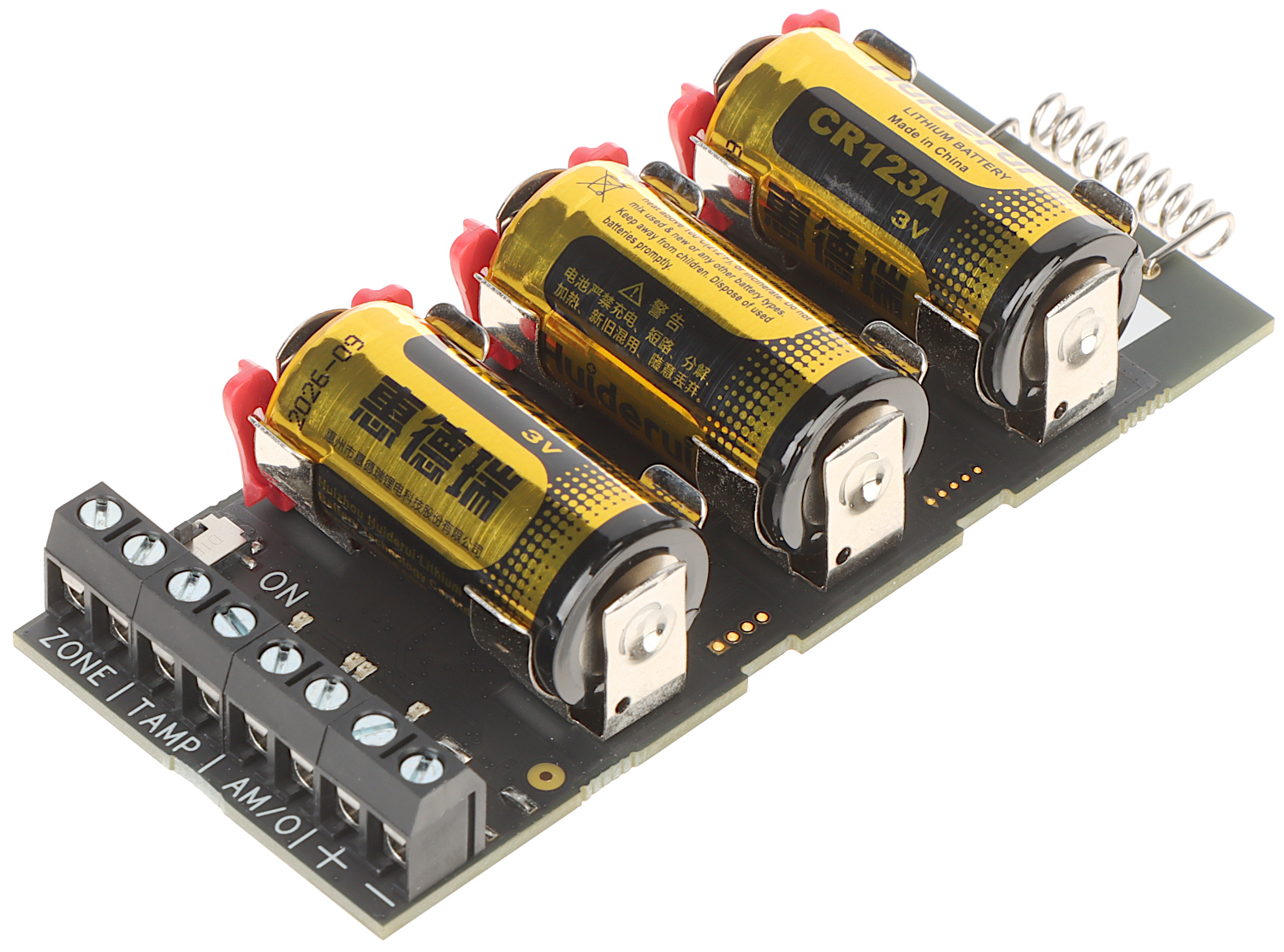 Υιοθετεί ασύρματη επικοινωνία Tri-X 868MHz με κρυπτογράφηση AES και εμβέλεια ως 1700 m σε ανοικτό χώρο. Τροφοδοτείται από 3 μπαταρίες CR123A 3V (παρέχονται - είναι ήδη τοποθετημένες) με μέση διάρκεια τυπικής λειτουργίας 5 ετών. Διαθέτει διακόπτη τροφοδοσίας. Διαστάσεις (ΠxΒxY): 41x20x102 mm.