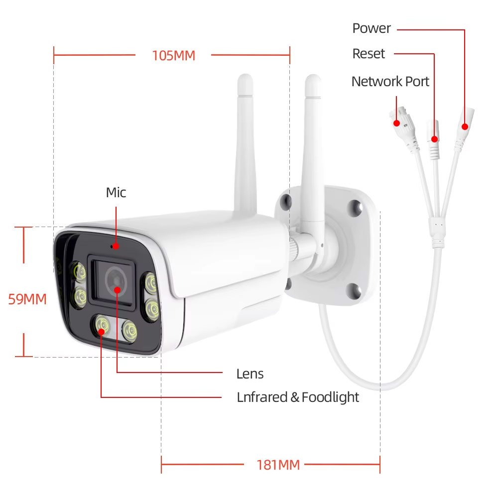 Λειτουργεί με τάση τροφοδοσίας 12V DC (περιλαμβάνει τροφοδοτικό πρίζας 12VDC) και σας παρέχει την δυνατότητα εγγραφής σε κάρτα microSD για τοπική καταγραφή των Videos. (η κάρτα μνήμης δεν περιλαμβάνεται). Αδιάβροχο κέλυφος με βαθμό στεγανότητας IP66, για χρήση σε εξωτερικούς χώρους. Η εγκατάσταση είναι εύκολη και λειτουργούν με τις δωρεάν εφαρμογές CamHi και CAMHi Pro.