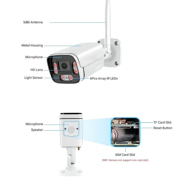 Λειτουργεί με τάση τροφοδοσίας 12V DC (περιλαμβάνει τροφοδοτικό πρίζας 12VDC) και σας παρέχει την δυνατότητα εγγραφής σε κάρτα microSD για τοπική καταγραφή των Videos. (η κάρτα μνήμης δεν περιλαμβάνεται). Αδιάβροχο κέλυφος με βαθμό στεγανότητας IP66, για χρήση σε εξωτερικούς χώρους. Η εγκατάσταση είναι εύκολη και λειτουργούν με τις δωρεάν εφαρμογές CamHi και CAMHi Pro