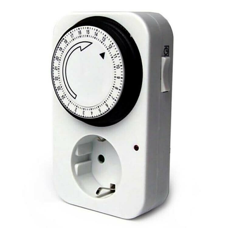 Μηχανικός ημερήσιος χρονοδιακόπτης πρίζας με ακρίβεια λιγότερο από 6 λεπτά την εβδομάδα. Ελάχιστος χρόνος προγραμματισμού 15 λεπτά με 96 προγράμματα On/Off