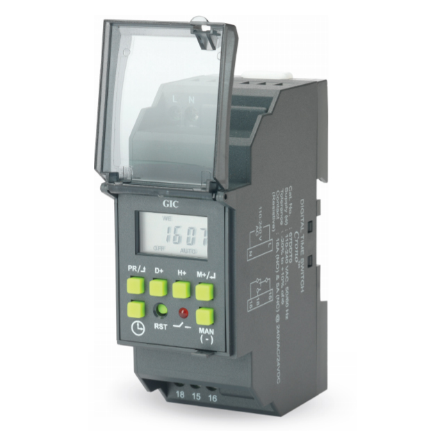Ψηφιακός Ημερήσιος και Εβδομαδιαίος Χρονοδιακόπτης Ράγας 110-240 VAC / 36mm της General Industrial Controls Private Limited (GIC), 67DDT0 CRONO.