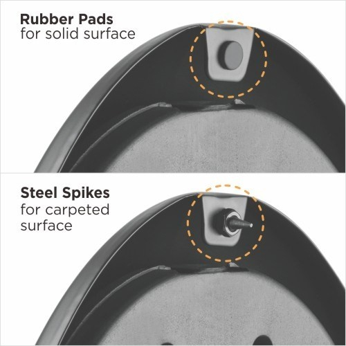 Ανάλογα την επιφάνεια που θα τοποθετήσετε τις βάσεις, μπορείτε να χρησιμοποιήσετε είτε τσόχινα pads (για πλακάκι, μάρμαρο, ξύλο, κλπ), είτε ακίδες (για μοκέτα). Τα υλικά αυτά περιλαμβάνονται στη συσκευασία τους.
