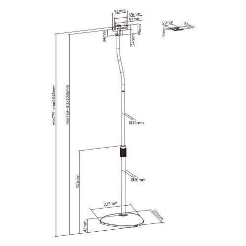 Universal ζευγάρι βάσεων στήριξης ηχείων σε δάπεδο μέγιστου βάρους 4.5kg. Από ανθεκτικό ατσάλι, με ρυθμιζόμενο ύψος απο 763mm έως 1036mm για να τοποθετήσετε τα ηχεία στο σωστό σημείο, σύμφωνα με τις απαιτήσεις σας.