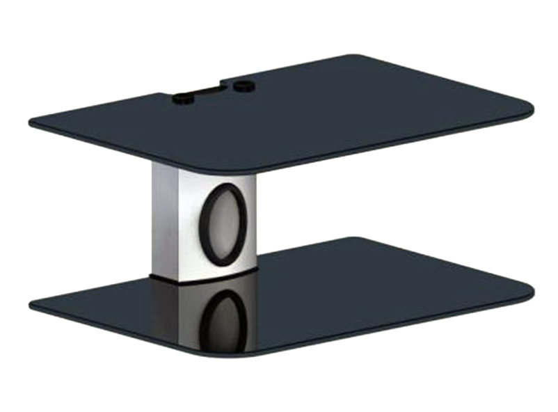 Βάση για Video ή DVD με 2 γυάλινα ράφια. Διαθέτει 2 γυάλινα ράφια tampered glass πάχους 6mm σε μαύρο χρώμα, το οποίο είναι ικανό να αντέξει φορτίο μέγιστου βάρους 10 κιλών. Διαθέτει σύστημα διαχείρισης καλωδίων για να περάσουν τα καλώδια μέσα από τον κορμό της βάσης.