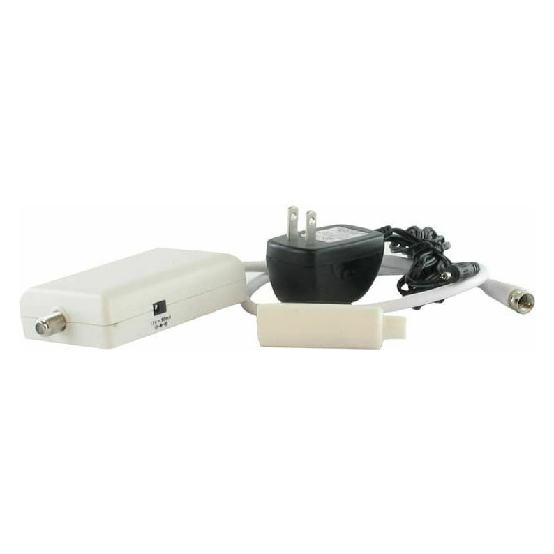 Στη συσκευασλια περιλαμβάνεται τροφοδοτικό 12VDC - 50mA / 220VAC και ο ενισχυτή της κεραίας. Από τον ενισχυτή βγαίνει καλώδιο RF (75 Ohm) με φις TV (αρσενικό) για να μπεί στην τηλεόραση. Η σύνδεση του ενισχυτή με την κεραίας γίνεται με καλώδιο RF (75 Ohm) και connectors τύπου F, ( δεν περιλαμβάνονται στη συσκευασία). Μπορείτε να επιλέξετε από τα παρακάτω σχετικά προϊόντα.