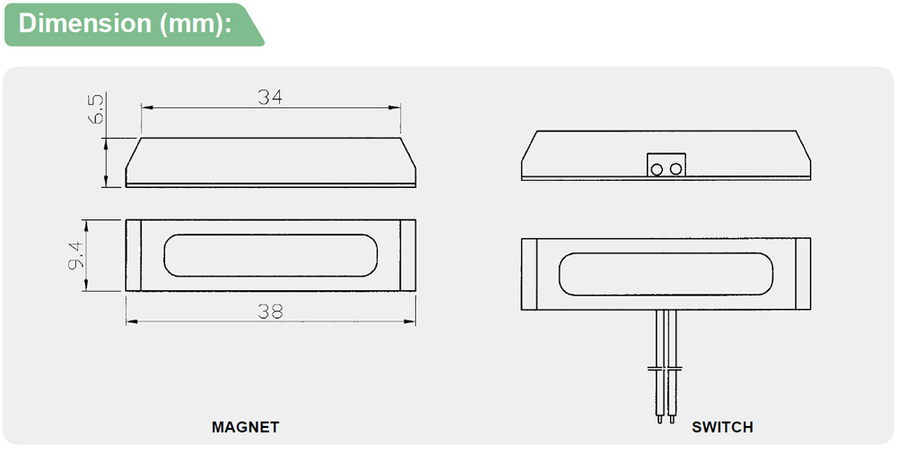 Sentek BS-2024 (ΛΕΥΚΗ) Αυτοκόλλητη μαγνητική επαφή (χωρίς φλάντζες) με καλώδιο στο πλάι. Λειτουργεί σε απόσταση μέχρι 26mm. Μήκος καλωδίου: 45cm. Ιδανική για πόρτες, παράθυρα, πόρτες ασφαλείας, κλπ.