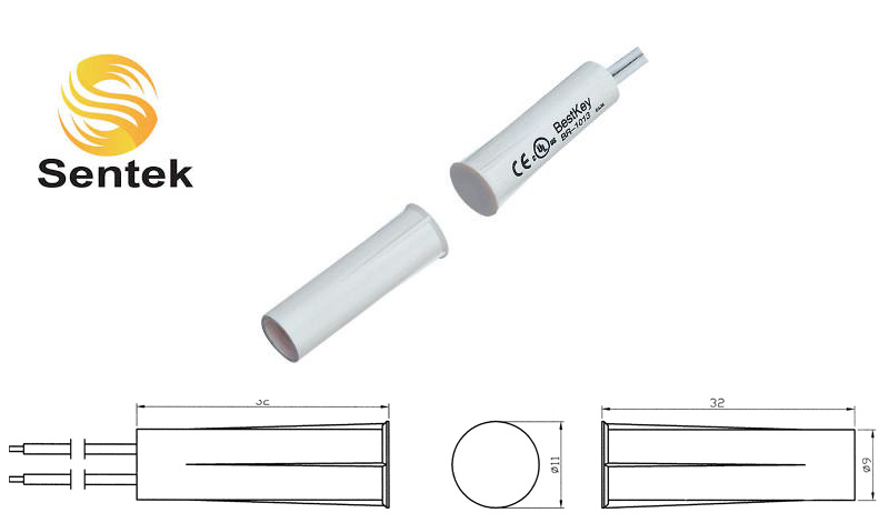 Sentek BR-1013 (ΛΕΥΚΗ) Χωνευτή μαγνητική επαφή ευρείας χρήσης. Διαστάσεις:32x9mm. Λειτουργεί σε απόσταση μέχρι 28mm. Ιδανική για πόρτες, παράθυρα, κλπ. Μήκος καλωδίου: 45cm