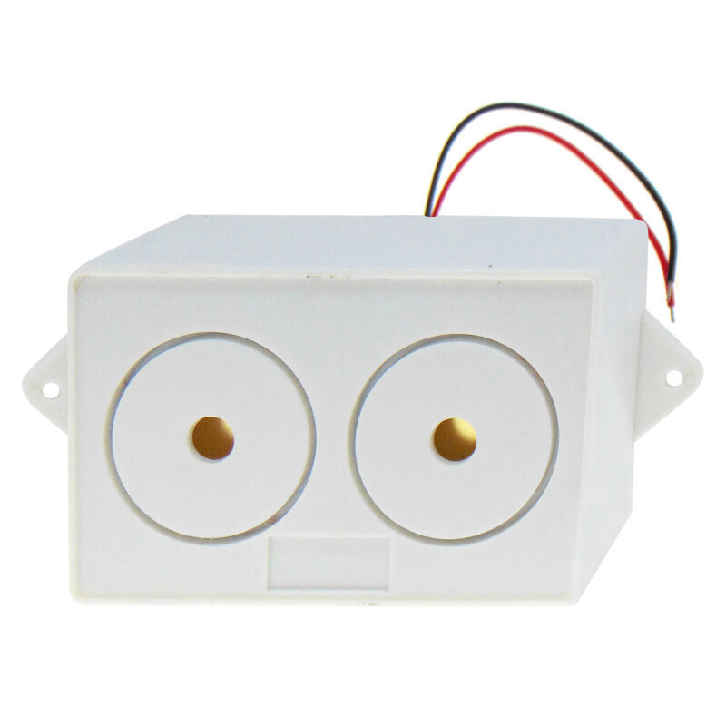 KPS-G8555 Σειρήνα Διπλή 12VDC 105dB. Διαθέτει πολύ δυνατό / έντονο ήχο, κατάλληλη και για εσωτερική σειρήνα σε συστήματα συναγερμού - ασφαλείας. Είναι κατάλληλη για στήριξη και σε επιφάνεια - διαθέτει υποδοχές στήριξης στα 2 άκρα.