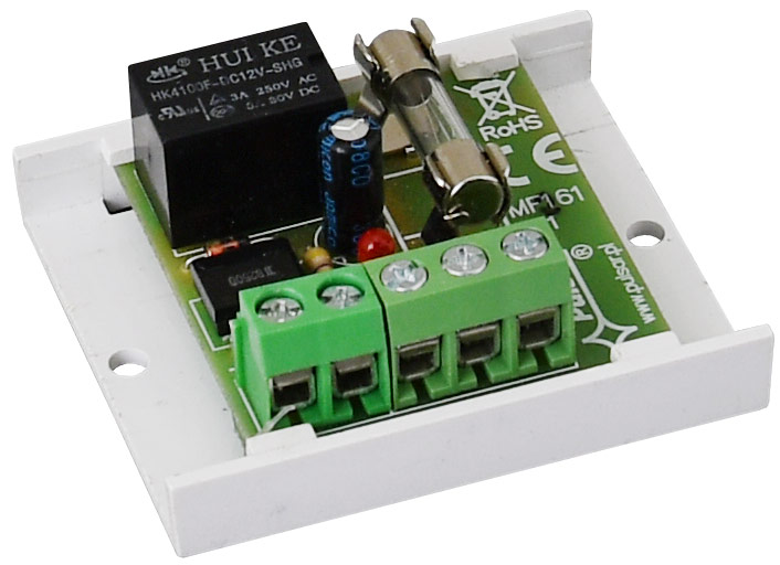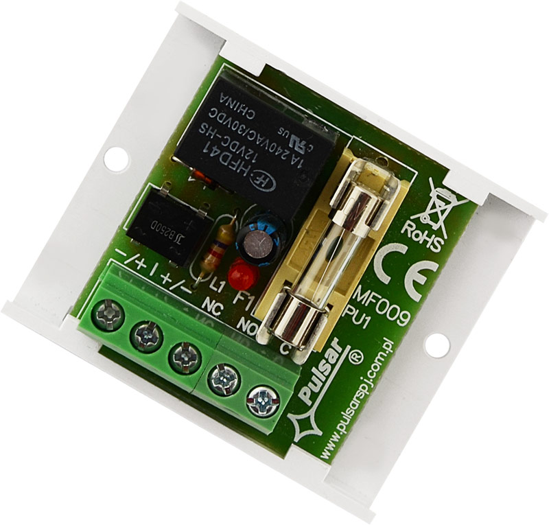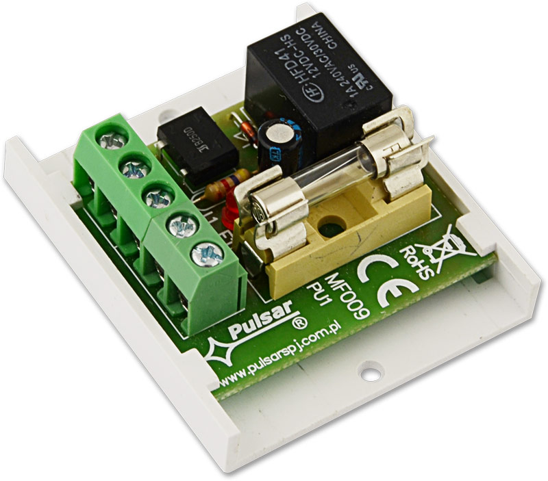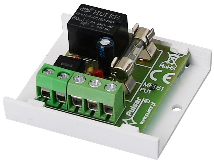 ​PULSAR AWZ510 Πλακέτα ρελέ 12VDC σε πλαστική βάση με ταινία διπλής όψεως, ενδεικτικό LED & γυάλινη ασφάλεια