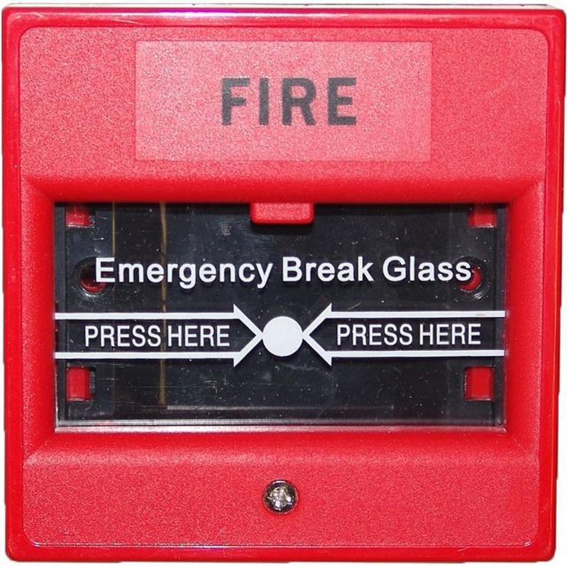 Συμβατικό μπουτόν αναγγελίας Πυρκαγιάς μη-επανατάξιμο (το πλαστικό τζαμάκι σπάει και δεν επανέρχεται) . Διατίθεται σε κόκκινο χρώμα.