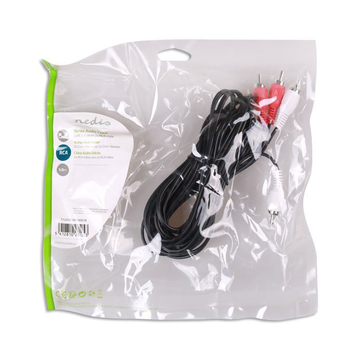 Καλώδιο 2 x RCA αρσ. σε 2 x RCA αρσ. 5m της NEDIS, CAGP24200BK50.