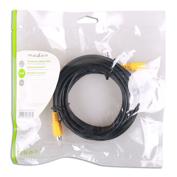 Καλώδιο εικόνας RCA αρσ. Composite - RCA αρσ. Composite 5m της NEDIS, CVGP24100BK50. Ιδανικό για τη σύνδεση μιας συσκευής όπως ένα DVD player σε τηλεόραση.