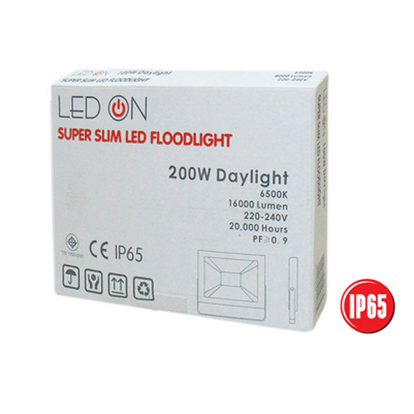 LED ON 1286 QY-2507 Προβολέας LED SUPERSLIM ισχύος 200 Watt με ψυχρό φωτισμό 6500Κ σε Μαύρο
