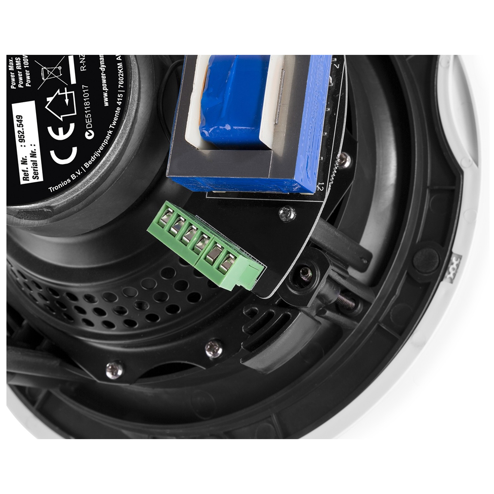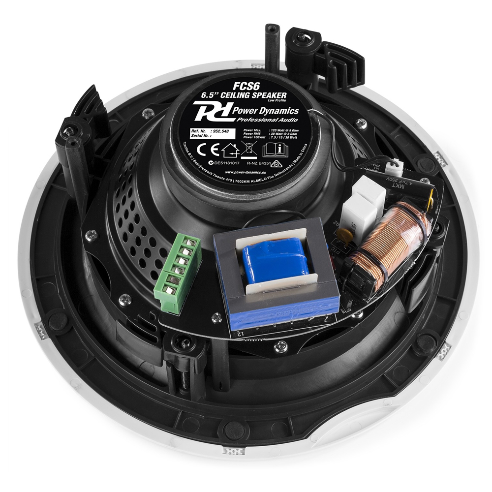 952.548 POWER DYNAMICS FCS6 Ηχείο οροφής (ABS) πλαστικό 6.5” Low profile, 2 δρόμων με μετασχηματιστή προσαρμογής 100V. Ηχείο που μπορεί να λειτουργήσει είτε σε ωμική γραμμή ισχύος 120 Watt Max / 30 Watt RMS, είτε σε 100V γραμμή εγκατάστασης ισχύος 30Watt / 100V. Ευαισθησία 88dB, απόκριση συχνότητας 70Hz- 20kHz. Διαστάσεις: 242Ø x 100mm. Διάμετρος οπής 202Ømm. Βάρος 0.95 kg. Χρώμα λευκό.