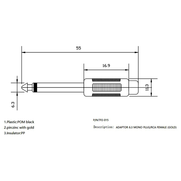 ULTIMATE TP2-015 JYC Adaptor Επίχρυσο καρφί 6.3mm MONO αρσενικό σε RCA θηλυκό