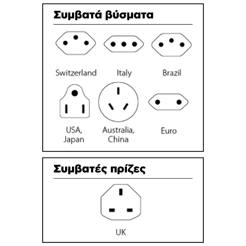 Σημείωση: Ο αντάπτορας δεν μετατρέπει/μεταβάλλει την τάση! Θα πρέπει να είστε σίγουροι ότι η συσκευή μπορεί να λειτουργήσει με την τάση του ηλεκτρικού δικτύου πριν τη χρησιμοποιήσετε.