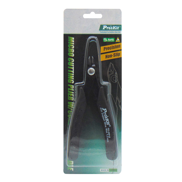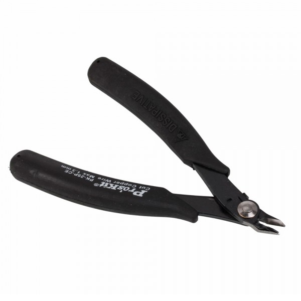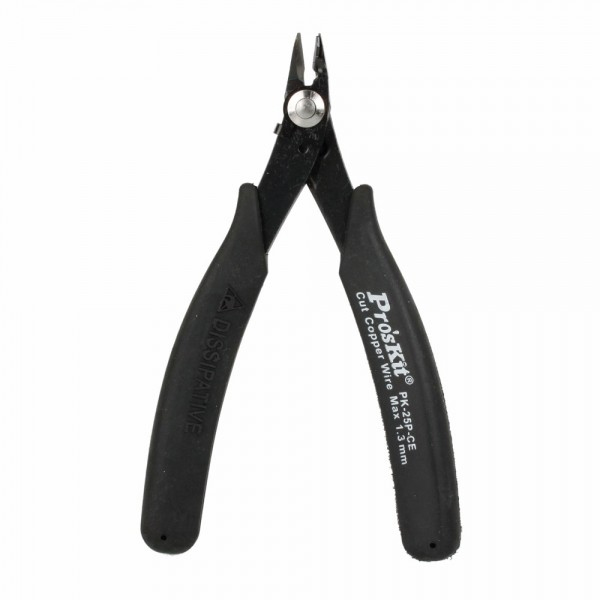 Κόφτης Πλάγιος ESD (αντιστατικός) 130mm της ProsKit, 1PK-25P-E. Κατασκευασμένος από κράμα σφυρήλατου σκληρού ανθρακούχου χάλυβα με ενίσχυση στις κοπτικές επιφάνειες και με λαβές (grips) από αγώγιμο υλικό. Ιδανικός για καλώδια έως 1.3mm.