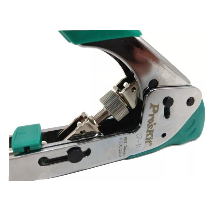 Πρέσα συμπίεσης Μεταλλική για connectors τύπου F, BNC, RCA της ProsKit, CP-313. Αποδοτική λύση για πρεσάρισμα του βύσματος με τέλεια εφαρμογή σε μηδενικό χρόνο. Κατάλληλη για καλώδια RG58, RG59 και RG6. Με ρυθμιζόμενη απόσταση συμπίεσης και επαναφορά. Μήκος πρέσας: 152mm.