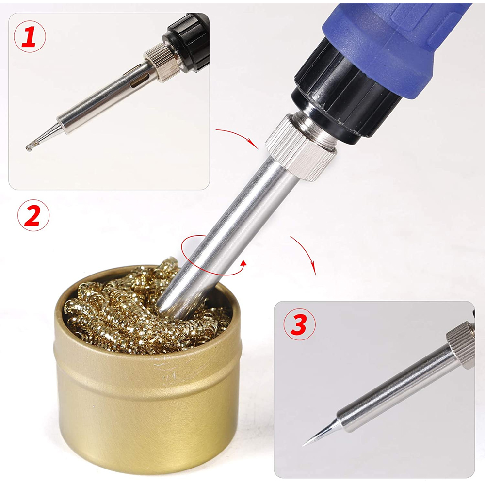 Για να το χρησιμοποιήσετε, απλά θερμάνετε το κολλητήρι, βυθίστε το στο καθαριστικό βαζάκι και στη συνέχεια στρίψτε το για να γίνει συνολικός καθαρισμός.