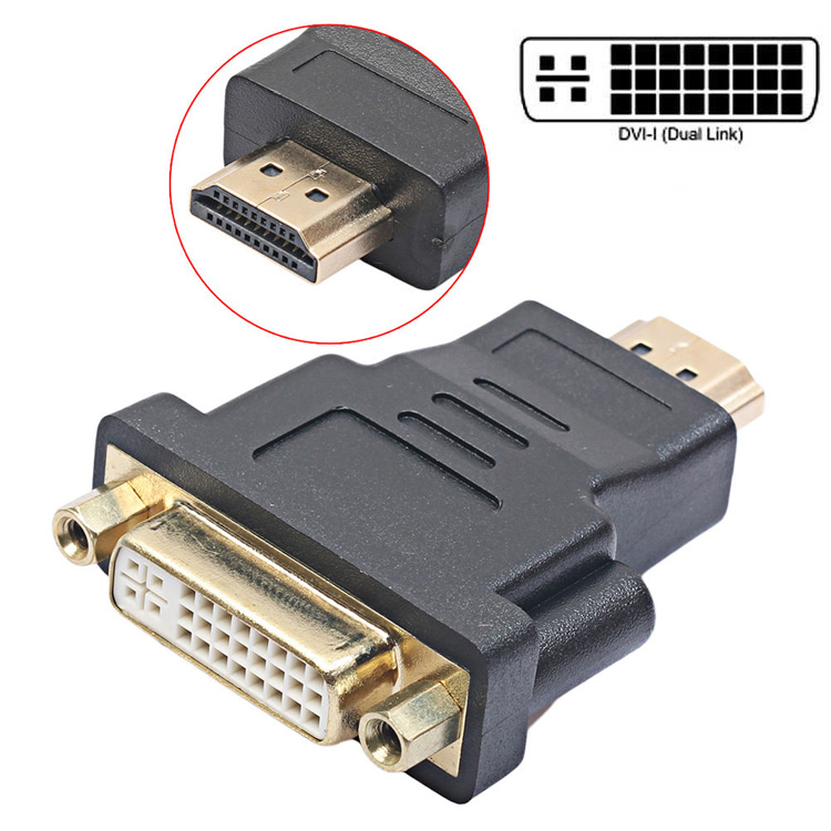 CHA-017 Adapter DVI (DVI-I Dual Link 24+5i) θηλυκό σε HDMI αρσενικό.