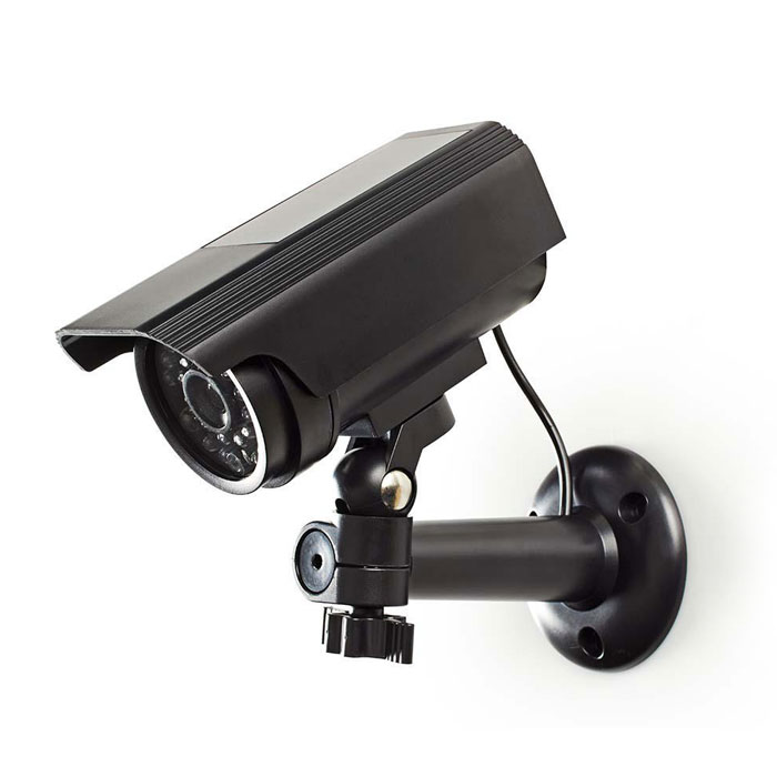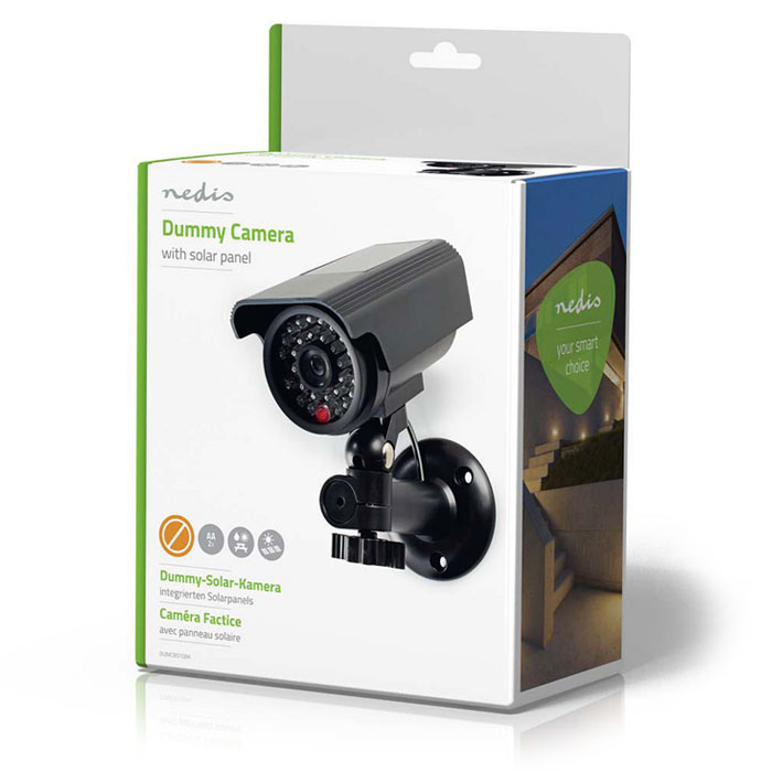 Η ψεύτικη κάμερα DUMCBS10BK της NEDIS είναι ένα ομοίωμα κάμερας ασφαλείας CCTV κατάλληλη για εσωτερικούς και εξωτερικούς χώρους, με ψεύτικα LED υπερύθρων (ανενεργά) ώστε να αποτελεί πιστό αντίγραφο μιας πραγματικής κάμερας.