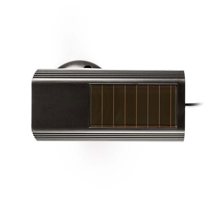 Διαθέτει ενσωματωμένο ηλιακό συλλέκτη (ηλιακό πάνελ) ο οποίος αφενός αναλαμβάνει την τροφοδοσία του ενεργού LED κόκκινου χρώματος που αναβοσβήνει συνεχώς όταν υπάρχει επαρκής φωτισμός, αφετέρου αναλαμβάνει την φόρτιση των επαναφορτιζόμενων μπαταριών (2xAA - δεν περιλαμβάνονται) τις οποίες μπορεί να δεχθεί η κάμερα για την λειτουργία του LED κατά τις νυχτερινές ώρες που δεν υπάρχει ηλιοφάνεια. Αν στο σημείο τοποθέτησης υπάρχει επαρκής φωτισμός, δεν χρειάζεται καν να τοποθετήσετε μπαταρίες.