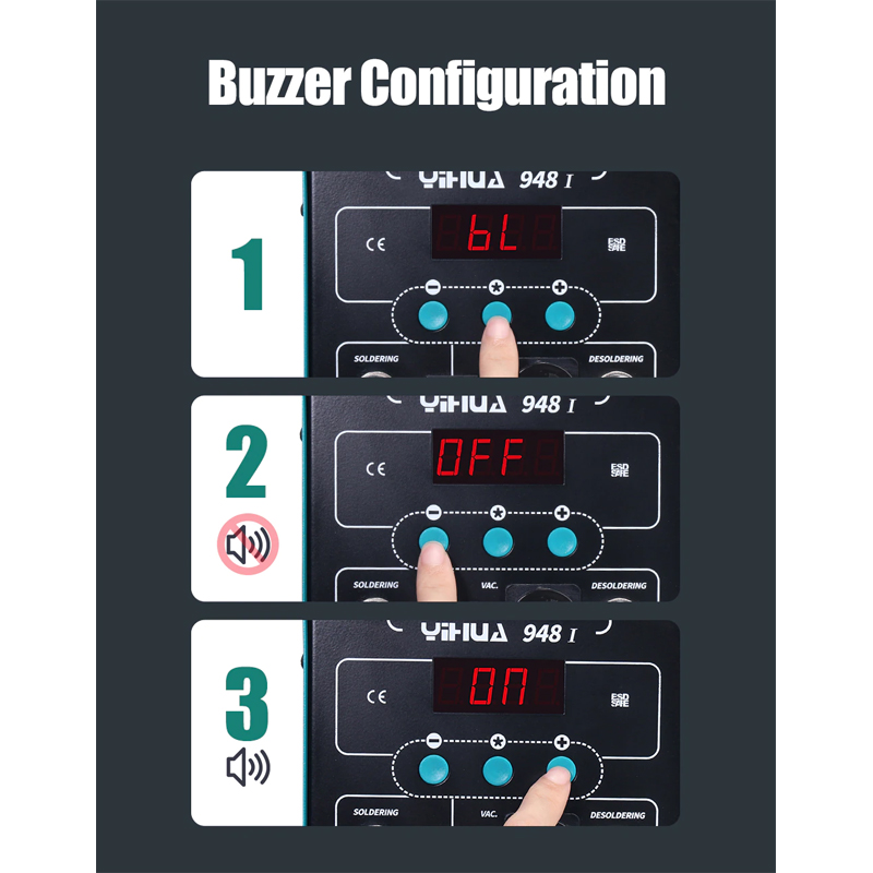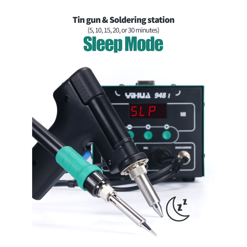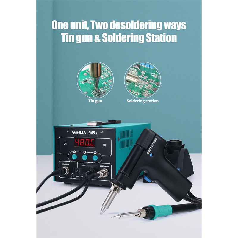 Ο σταθμός ΥΗ-948-I μπορεί να λειτουργεί είτε σαν σταθμός κόλλησης είτε σαν σταθμός με απορροφητικό πιστόλι κόλλησης. Η κάθε λειτουργία επιλέγεται μεμονομένα μέσω του αντίστοιχου πλήκτου ON-OFF-ON.