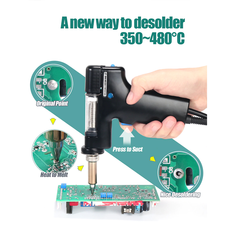 Το εύρος θερμοκρασίας του κολλητηριού είναι 200-480°C, του πιστολιού αποκόλλησης 350-480°C και η ισχύς αντλίας κενού/ υποπίεση 12W/0.05ΜPa.