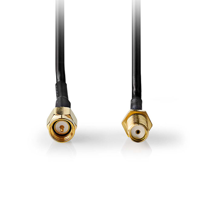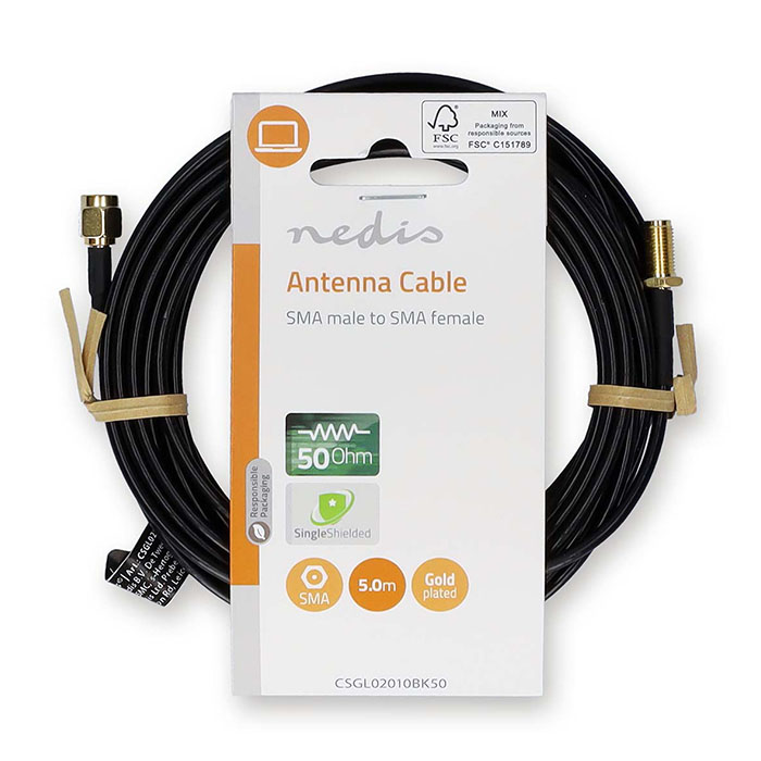 Καλώδιo SMA αρσ. - SMA θηλ. με επίχρυσα βύσματα 5m της NEDIS, CSGL02010BK50. Κατάλληλο για τη σύνδεση συσκευών wifi.