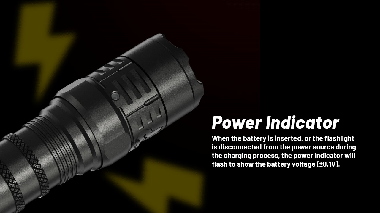 Διαθέτει ενσωματωμένο σύστημα φόρτισης μέσω USB-C και συνοδεύεται από μία επαναφορτιζόμενη μπαταρία NITECORE 21700i / 5000mAh / 15A  (NL2150hpi) με πολύ μεγάλη διάρκεια λειτουργίας που μπορεί να φθάσει και τις 45 ώρες όταν λειτουργεί στην πολύ χαμηλή ένταση φωτισμού των 50 Lumens