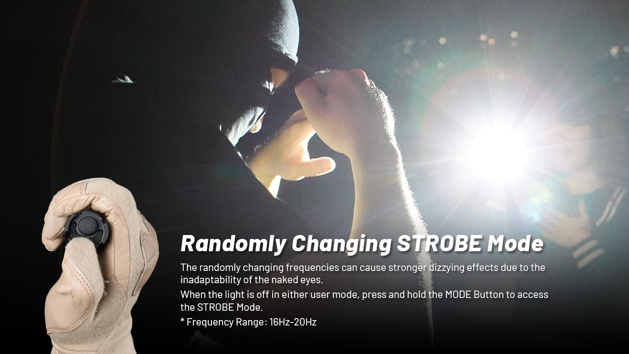 Ο ειδικός φωτισμός STROBE με την τυχαία εναλλαγή συχνότητας αναλαμπών, προσφέρει μεγαλύτερο αποτέλεσμα ζάλης καθώς η χρήση του σε γυμνά μάτια δεν επιτρέπει να το συνηθίσουν .