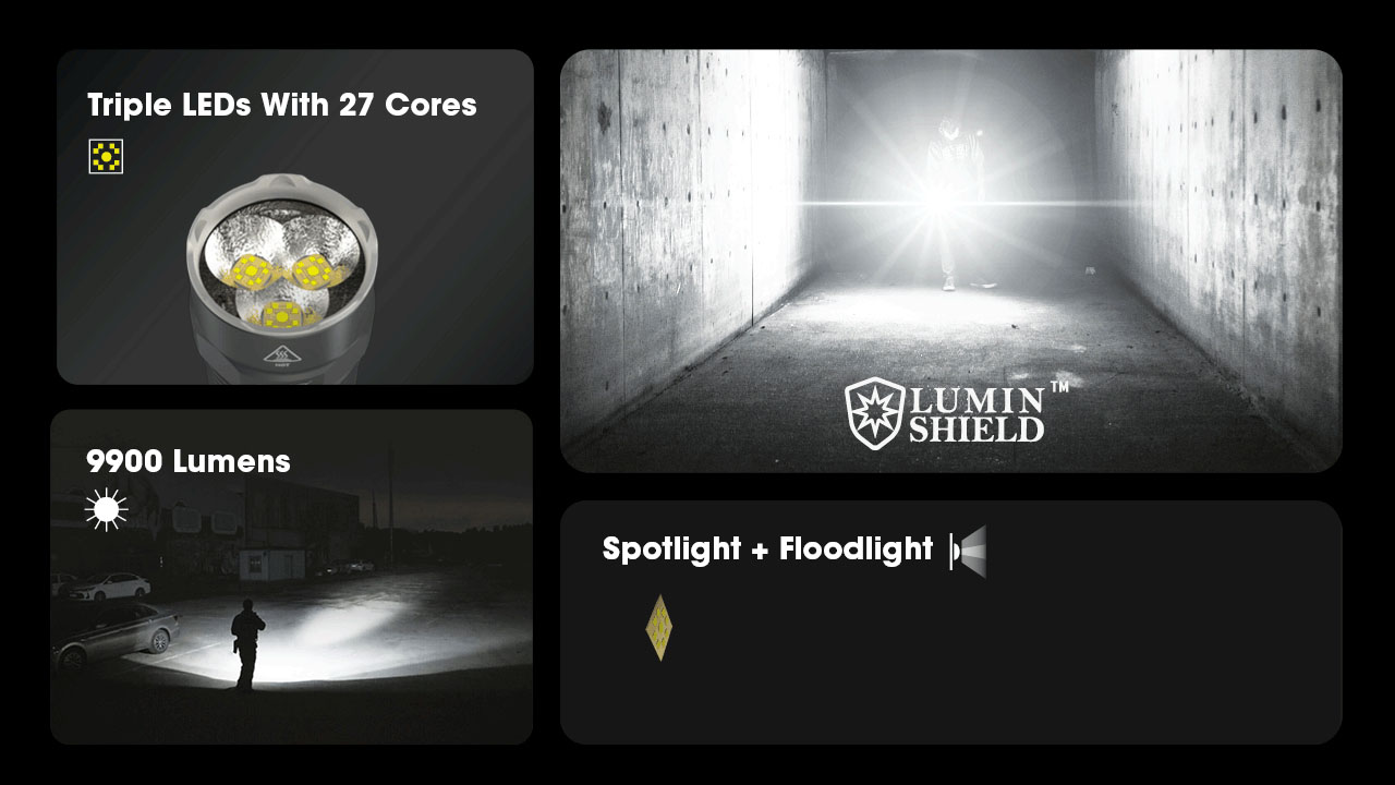 • 4 επίπεδα φωτεινότητας για εναλλαγή- διαθέσιμα SEARCH και LUMIN SHIELD™