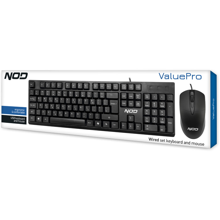Το NOD Valuepro, είναι ένα σετ ενσύρματο πληκτρολόγιο και οπτικό ποντίκι, υψηλής ποιότητας και εξαιρετικής εργονομίας, που προσφέρουν στον χρήστη μέγιστη άνεση και ευκολία. Το πληκτρολόγιο διαθέτει ελληνικό layout, ενώ το ποντίκι έχει το ιδανικό βάρος για να προσφέρει τέλεια αίσθηση ακρίβειας κατά την χρήση.