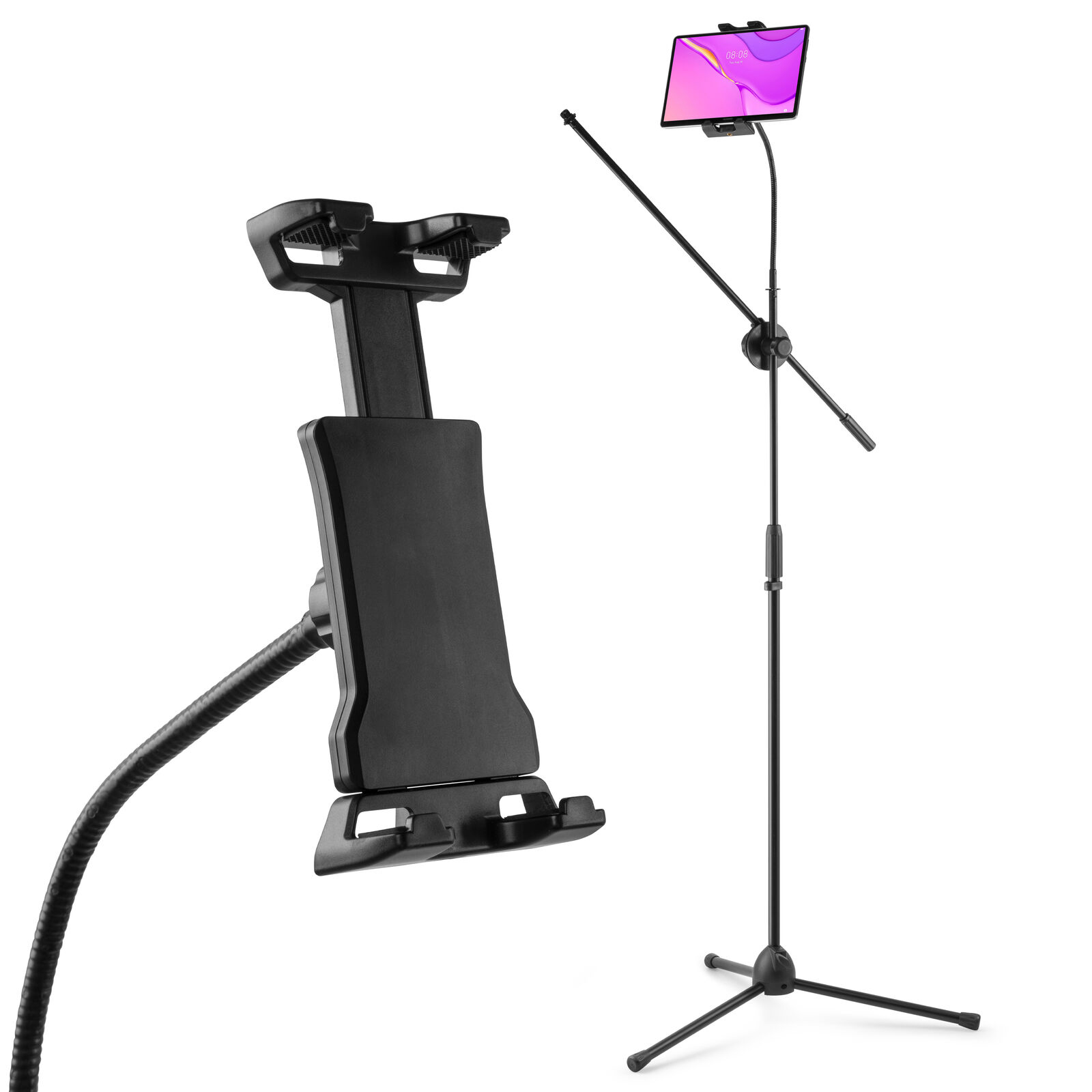 Το υπέροχο με αυτή τη βάση, είναι ότι διαθέτει και μια universal βάση για tablet όπου μπορείτε να τοποθετήσετε εύκολα το iPad ή το tablet Android. Είναι εξοπλισμένη με έναν στιβαρό μηχανισμό σύσφιξης που διασφαλίζει την ασφαλή σύνδεση του iPad, του tablet Android ή των smartphone σας. Η βάση μπορεί εύκολα να ρυθμιστεί για να κρατά σταθερά διαφορετικές συσκευές. Μπορείτε να προσαρμόσετε το ύψος της θήκης tablet πλήρως σύμφωνα με τις επιθυμίες σας. Είτε είστε όρθιοι, είτε καθιστοί, μπορείτε να περιστρέψετε και να γέρνετε τη βάση, ώστε να έχετε πάντα τέλεια θέα στην οθόνη σας. Επιπλέον, διπλώνεται εύκολα και επειδή ζυγίζει μόνο 1.85kg, είναι εύκολο να την πάρετε μαζί σας.