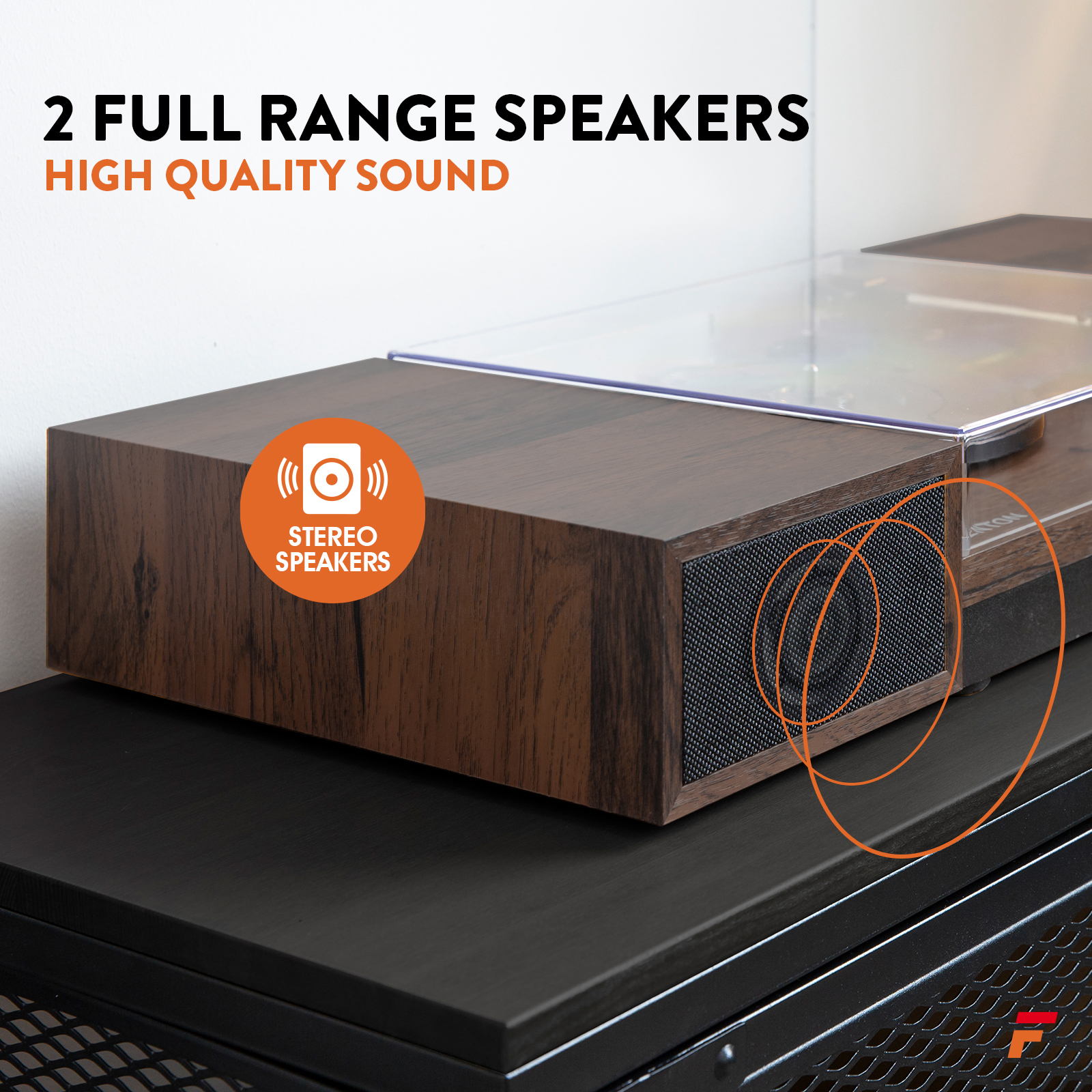 Ένα πραγματικά εκπληκτικό πικάπ της FENTON RP165D που δεν χορταίνεις να το βλέπεις! Μοναδικός σχεδιασμός, είτε σε compact τοποθέτηση, είτε σε ευρεία διάταξη, αποτελεί ένα κόσμημα για το χώρο σας. Εκτός από εξαιρετικά όμορφο, είναι ικανό να παίξει όλους τους τύπους βινυλίου (33⅓, 45 και 78 rpm), διαθέτει κεραμική βελόνα και λειτουργία Auto Stop. Επιπλέον ενσωματώνει δέκτη Bluetooth για ασύρματο Streaming μουσικής από tablet ή smartphone. Με τον ενσωματωμένο ενισχυτή και τα 2 ηχεία Full range ισχύος 2x 50 Watt θα βιώσετε ένα πραγματικά εξαιρετικό αποτέλεσμα. Δεν χρειάζεστε τίποτα άλλο για να απολαύσετε τον ήχο των αγαπημένων σας βινυλίων. Απλά βάλτε το δίσκο στο πλατό και απολαύστε !