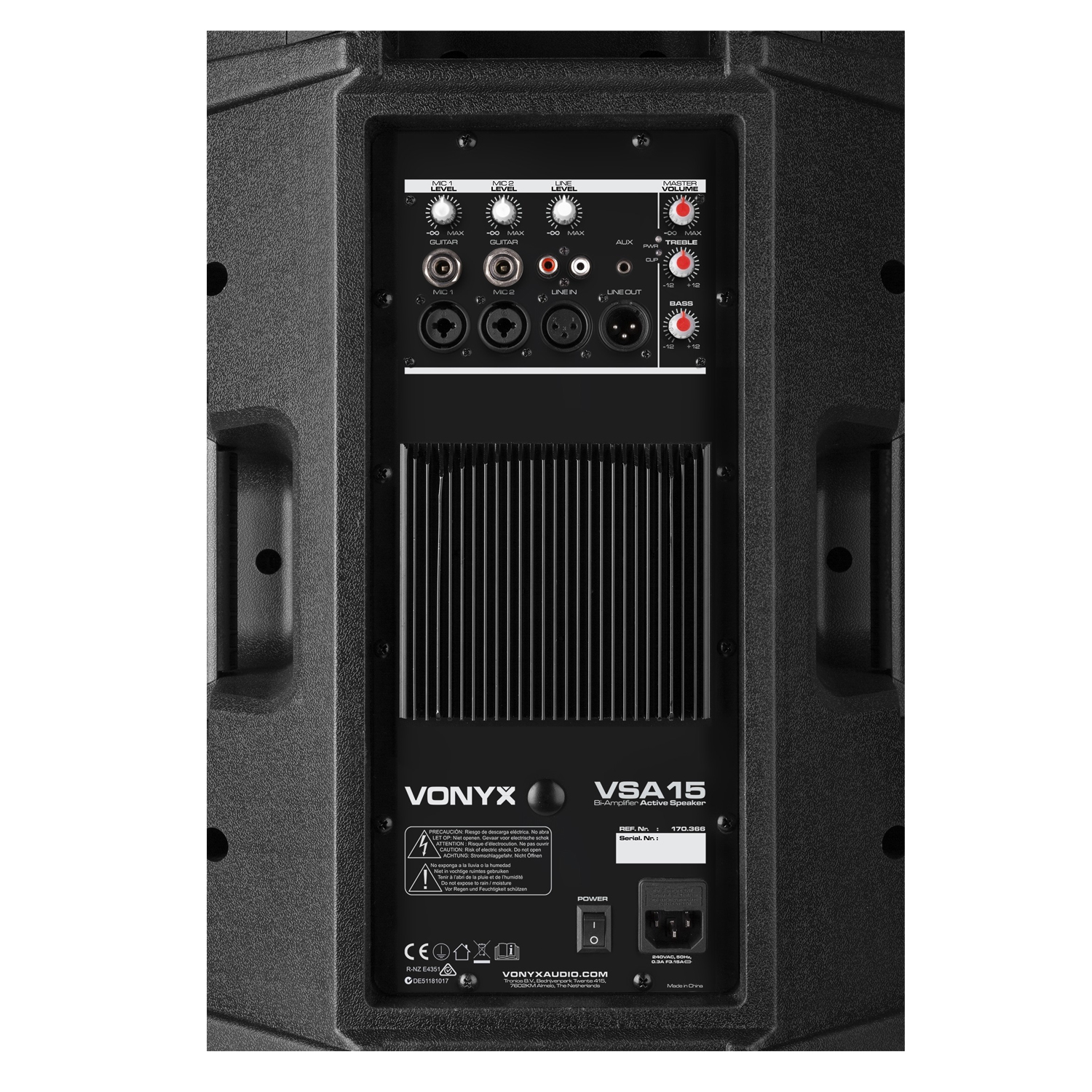 Το ενεργό ηχείο της VONYX παρέχει ισχύς 500 Watt / 1000 Watt Max με level 115dB (max) ικανό να σας παρέχει μια εκπληκτική εμπειρία. Το ηχείο φέρει ενισχυτή και διαθέτει και μίκτη, μιας και μπορεί να δεχθεί μια εξωτερική πηγή (line) και συνολικά 2 ενσύρματα μικρόφωνα. Η κάθε πηγή διαθέτει το δικό της ρυθμιστικό έντασης. Επιπλέον κεντρικό Equalizer 2-band (bass, treble).