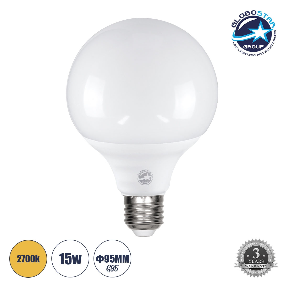 GloboStar 60041 Λάμπα LED E27 G95 Γλόμπος 15W AC 230V IP20 1410Lm Φ9.5 x Υ14cm Θερμό Λευκό 2700K