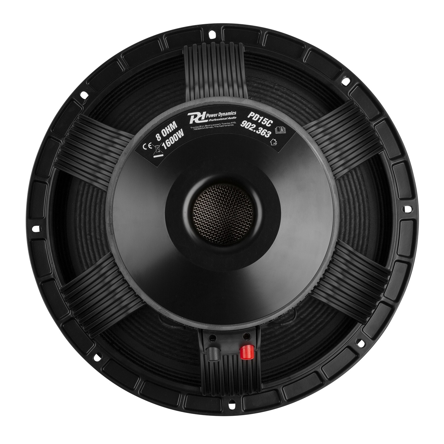 Ανταλλακτικό Woofer 15" ισχύος 1600 Watt Max / 800 Watt RMS με χυτό πλαίσιο Αλουμινίου 902.363. Woofer για επαγγελματική χρήση με πηνίο 100mm και κώνο fiberglass με ενιαία ανάρτηση τύπου "αράχνη" και αεριζόμενο πηνίο. Ιmdedance 8 Ohm. Frequency response 45 Hz - 2000 Hz. Διαστάσεις Φ 430 x 250 mm. Βάρος 12.3 Kg