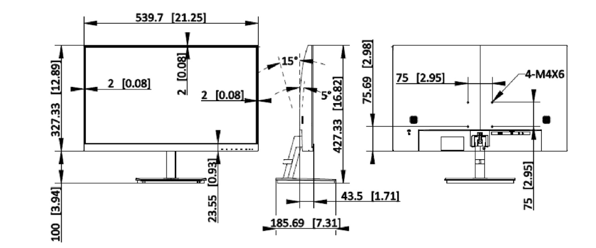 - VESA: 75 mm × 75 mm (4 - M4 × 6 mm)