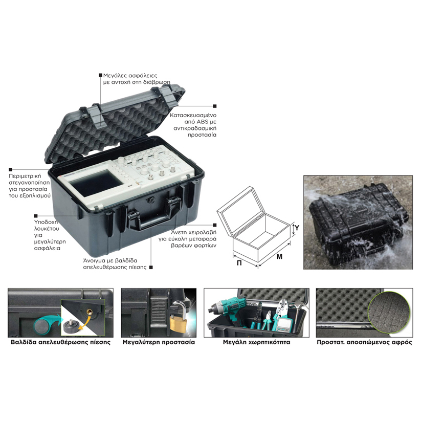 • Αδιάβροχη βαλίτσα για ασφαλή μεταφορά