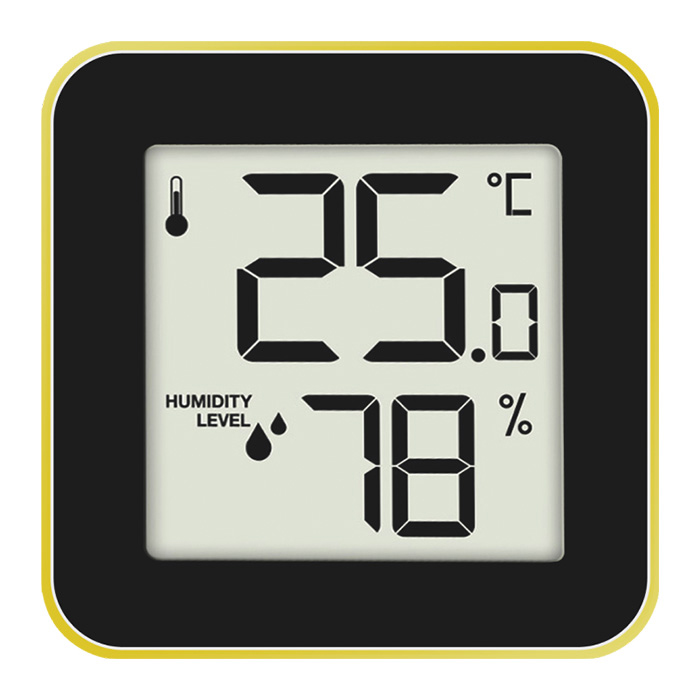 Κομψό, minimal και με αύρα πολυτελείας, με ευκρινή LCD οθόνη και ευανάγνωστα ψηφία, για να παρακολουθείτε την θερμοκρασία και τα επίπεδα υγρασίας στον χώρο σας, ενώ παράλληλα προσδίδει και μια κίτρινη πινελιά design στο σαλόνι σας. Μπορεί να τοποθετηθεί οπουδήποτε εσείς θέλετε στον χώρο σας, αφού λειτουργεί με μπαταρίες.