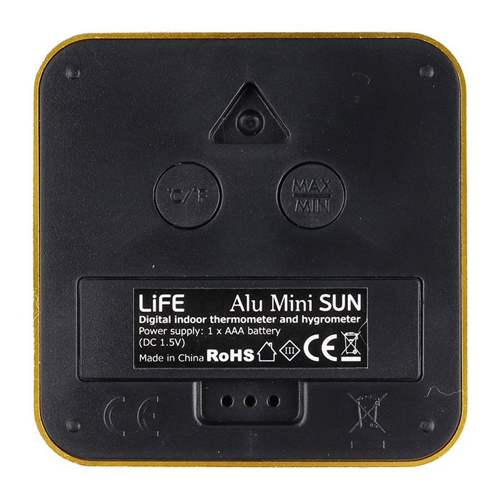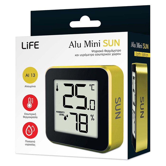 LIFE ALU MINI SUN Ψηφιακό Θερμόμετρο - Υγρόμετρο εσωτερικού χώρου με πλαίσιο Αλουμινίου - Κίτρινο