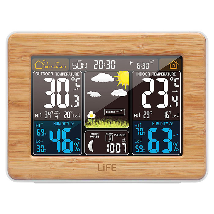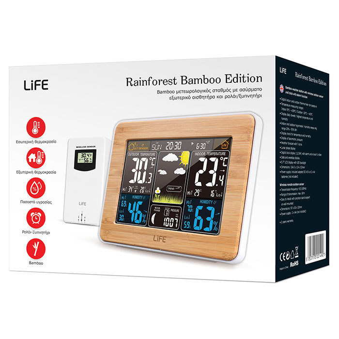 LIFE Rainforest Bamboo Μετεωρολογικός σταθμός με Ασύρματο Εξωτερικό αισθητήρα, οθόνη LCD 5.7" και ρολόι / ξυπνυτήρι